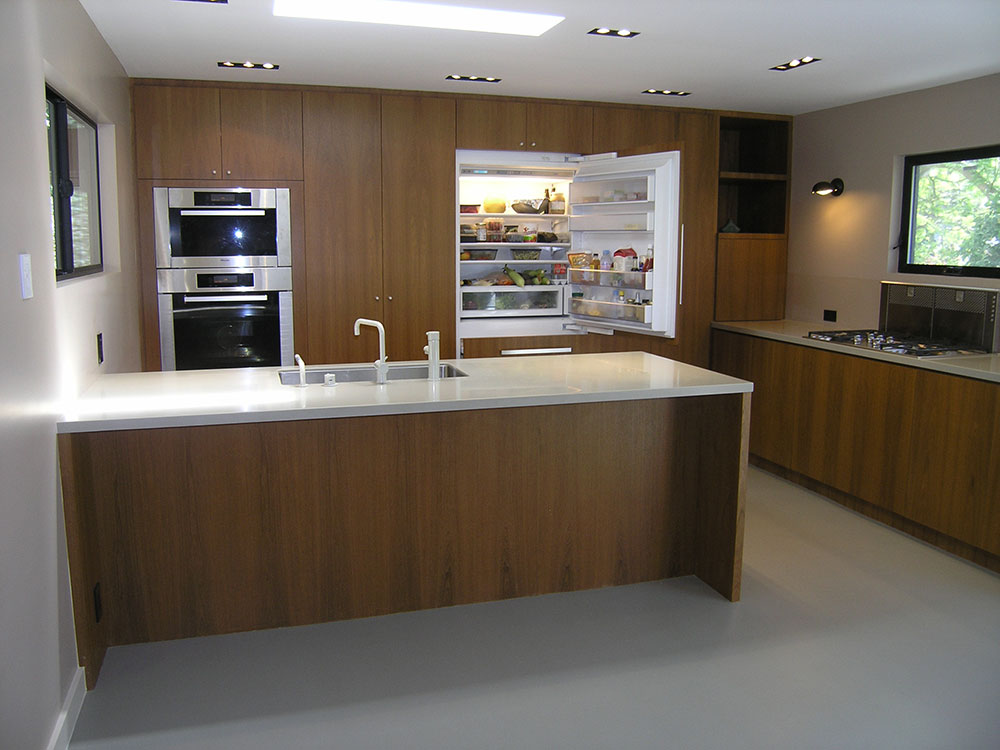 Create a luxurious focal point with this magnificent contemporary kitchen. You’ll feel like a master chef using the practical and functional gourmet accessories, and relish the spaciousness of the living and dining areas. The warmth of the teak wood provides a comfortable yet sleek modern elegance in this architectural masterpiece.